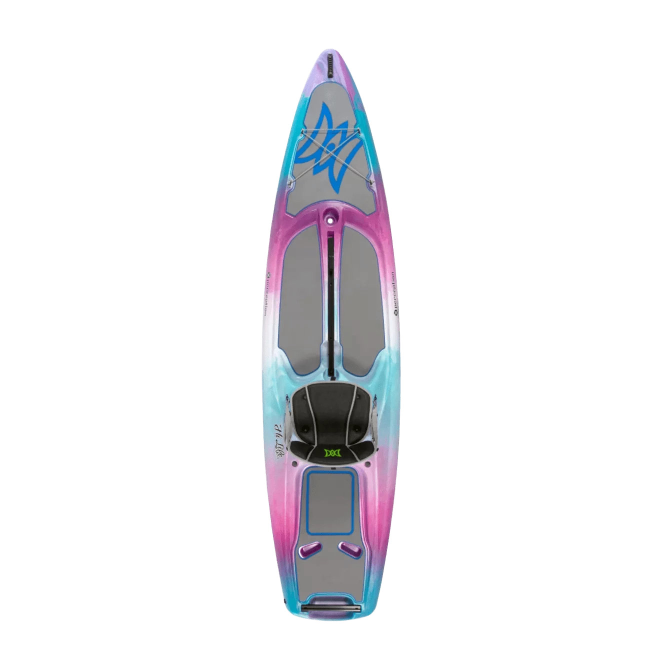 The award-winning Perception Hi Life 11.0 is the most versatile boat ever built, offering a sit-on-top design that can be paddled like a kayak or a stand-up paddle board. Its maximum stability and unique features create an experience unlike anything else — perfect for sharing the water with kids and pets. Unique cushioning across the entire top surface keeps feet happy all day. The low-profile rear swim deck with handles makes it easy to get back on board after swimming, while the large open front area is the perfect perch for small children or a dog.