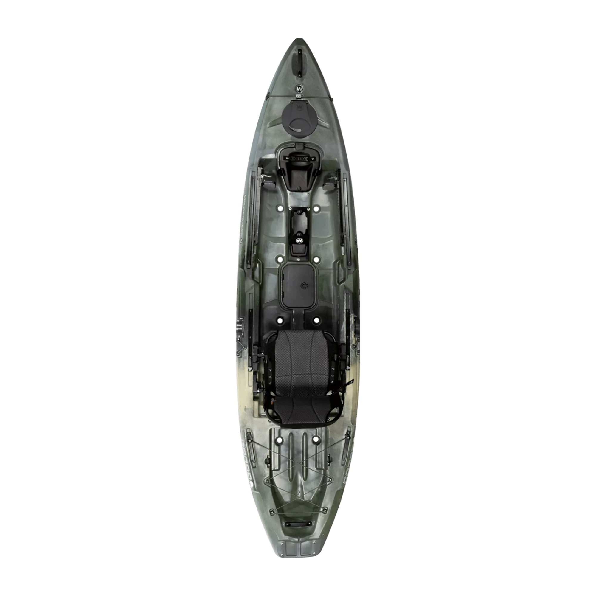 The Radar 115 features S.M.A.R.T. hull technology that combines Stability, Maneuverability, Acceleration, Responsiveness and Tracking throughout the entire design for ultimate performance in multiple water environments. In addition to a flat platform for standing and freedom of movement, the Radar 115 fishing kayak boasts state-of-the-art outfitting, including expansive SlideTrax™ rails, many storage opportunities, and rudder steering. The Flexpod provides easy access to mount fish finders, and the Helix PD™ Pedal Drive* is easily deployed from the integrated scupper pod. The AirPro Max complements the package with optimized positioning for any mode of travel.